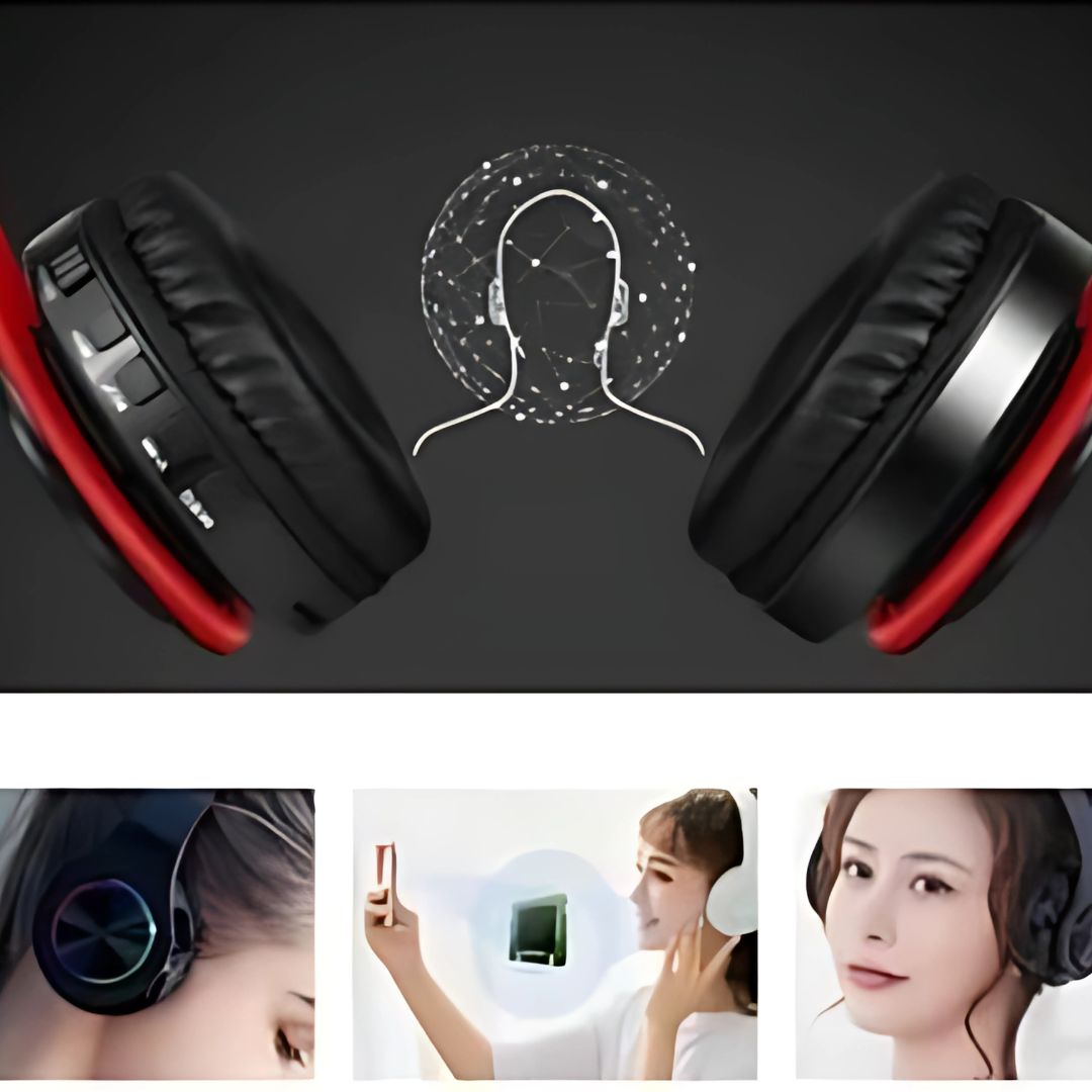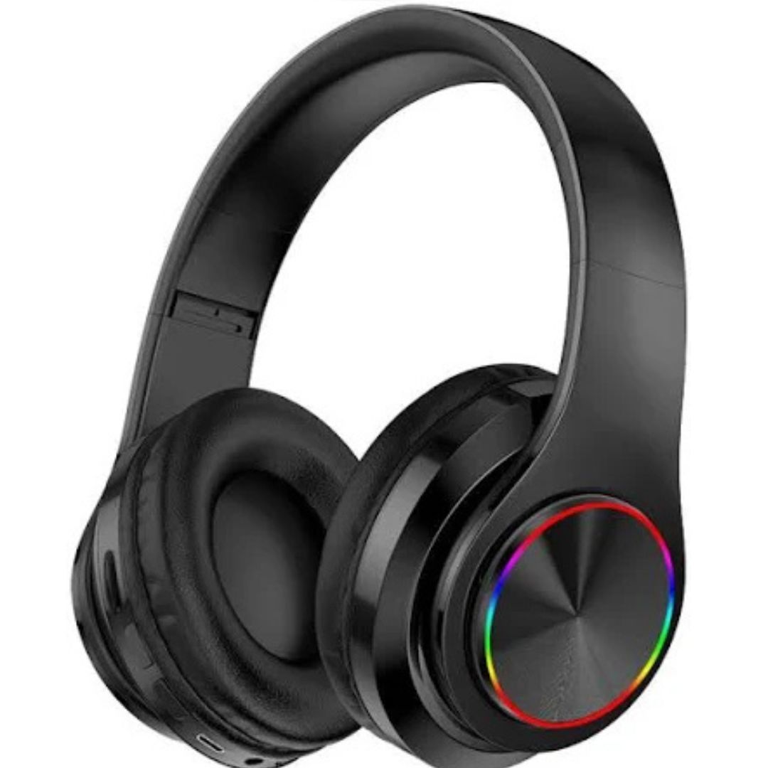 The headphones come with dynamic RGB LED lights on the earcups, giving a modern, trendy look — perfect for gaming, parties, or casual listening. With soft, cushioned ear pads and an adjustable headband, these headphones are built for long listening sessions without discomfort.